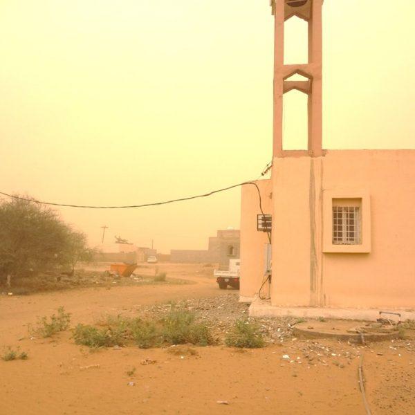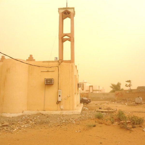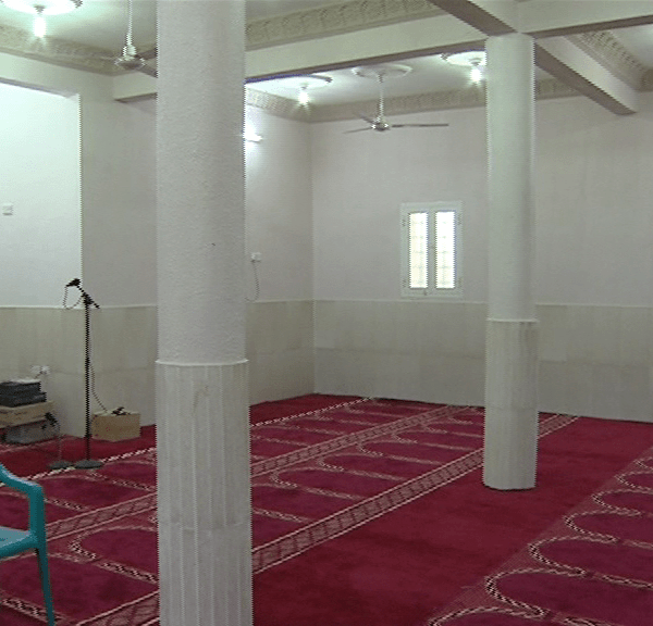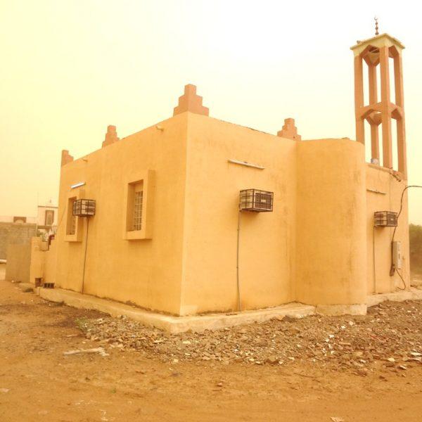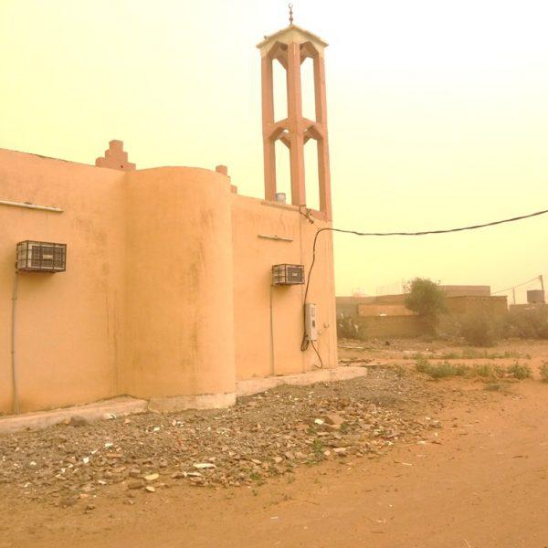 مسجد+ منارة + خزان مياه + دورات مياه .