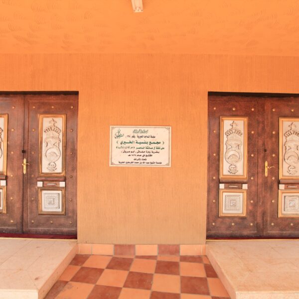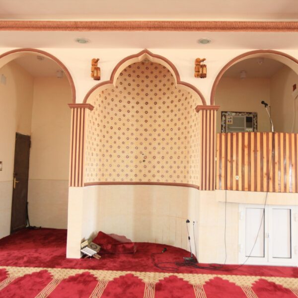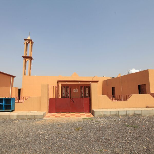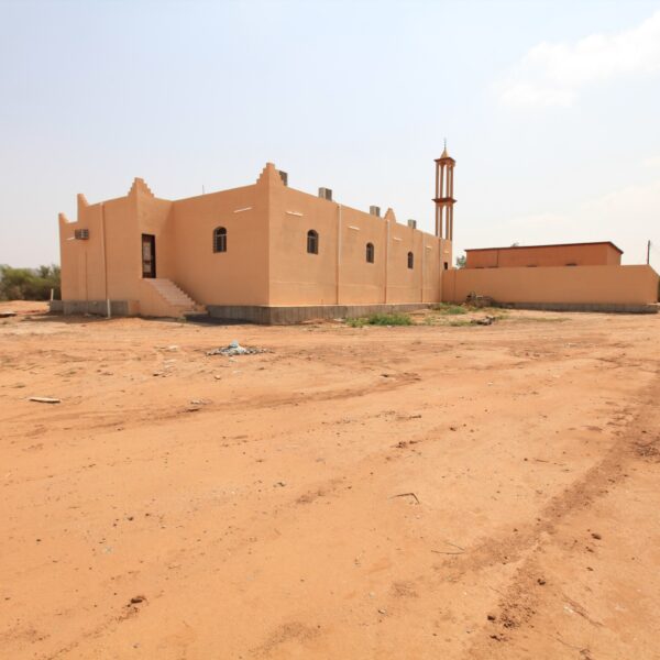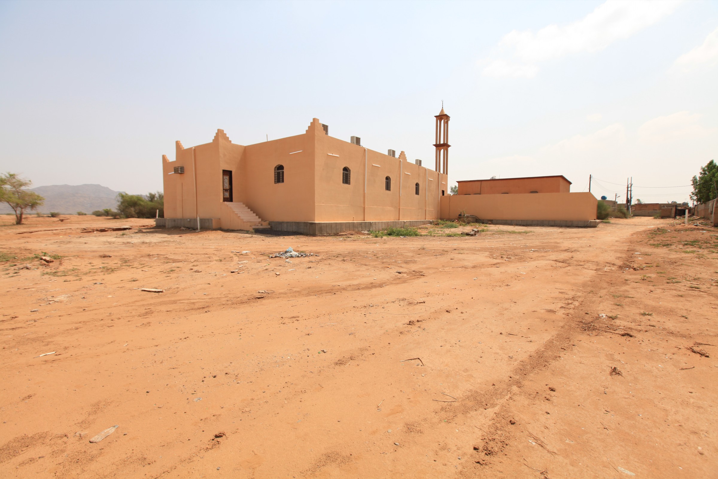 مسجد+ منارة +بئر +مغسلة موتى + دورة مياه + خزان مياه .