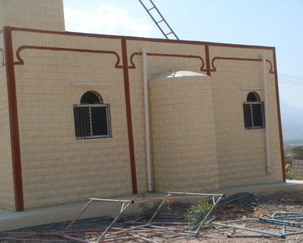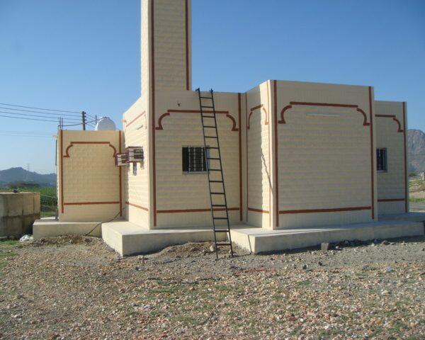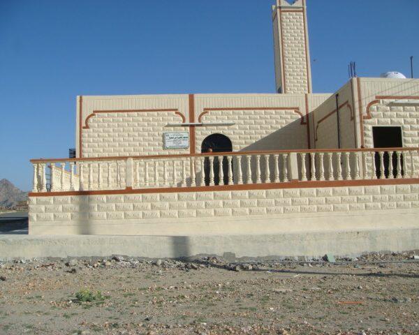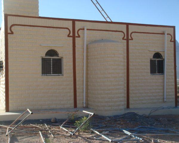مسجد+ منارة + خزان مياه + بئر مياه+ دورات مياه .