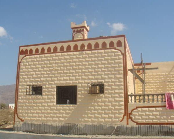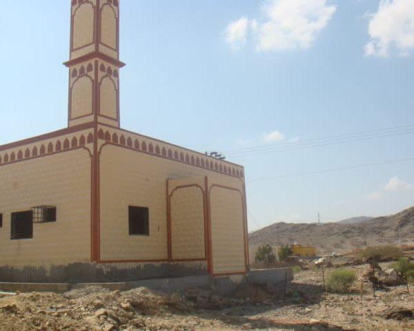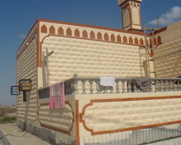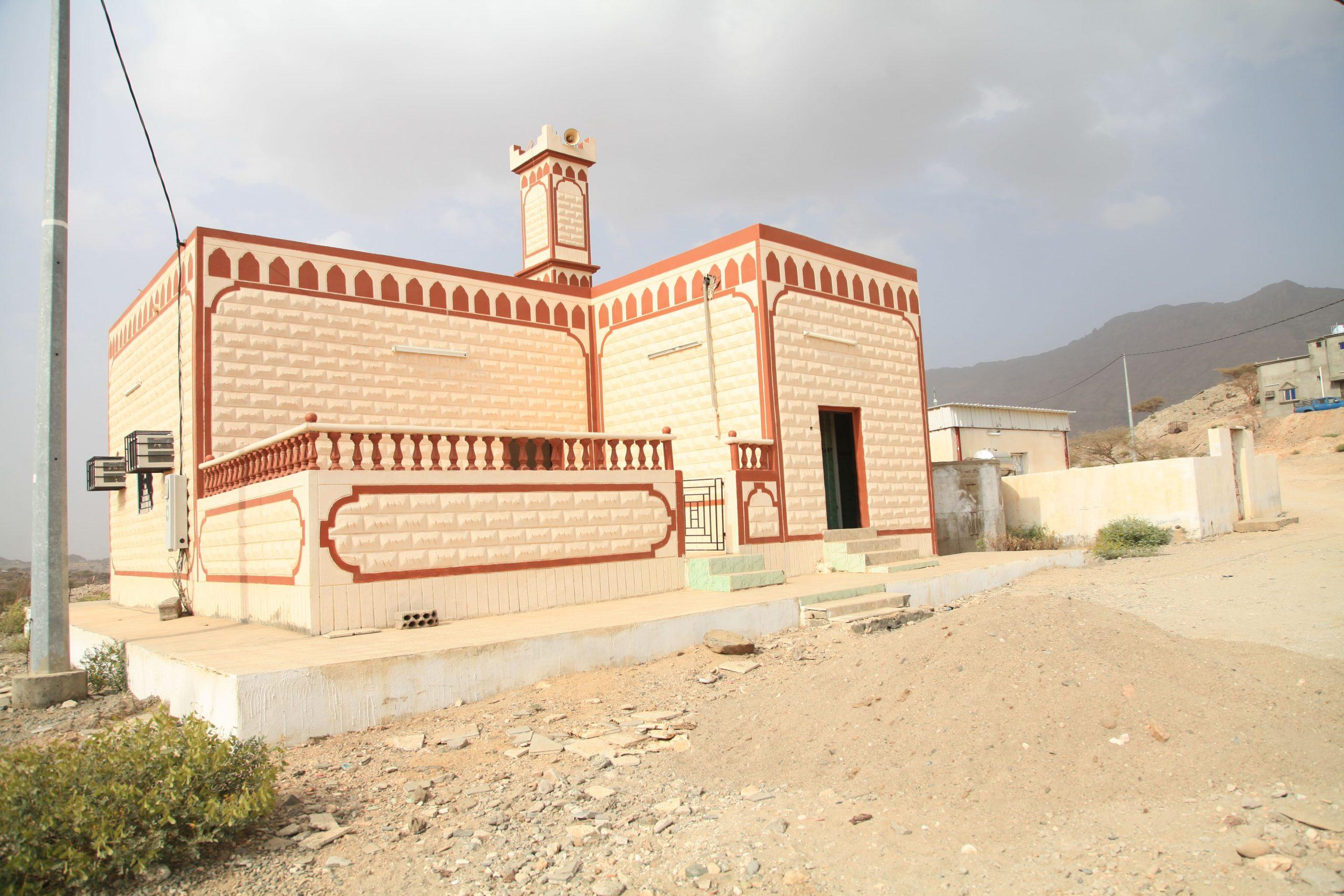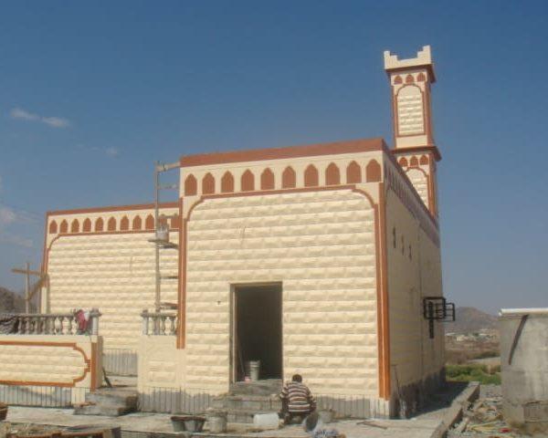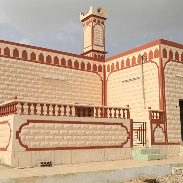 مسجد+ منارة + خزان مياه +  دورات مياه  .