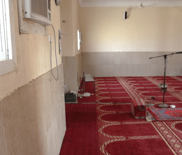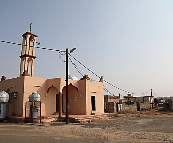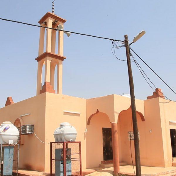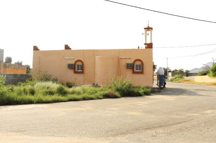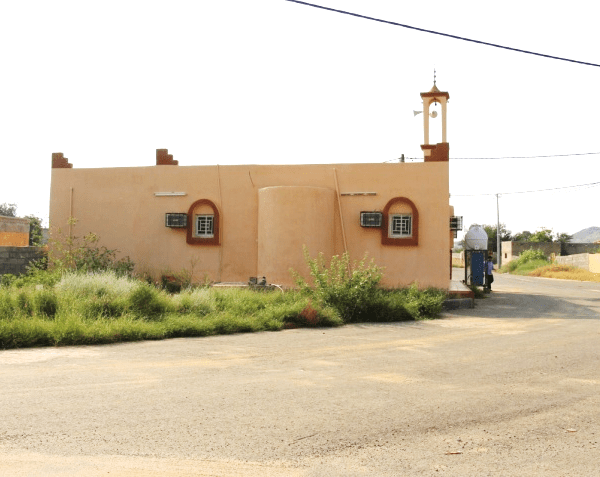 مسجد+ منارة + خزان مياه + بئر مياه+ دورات مياه .