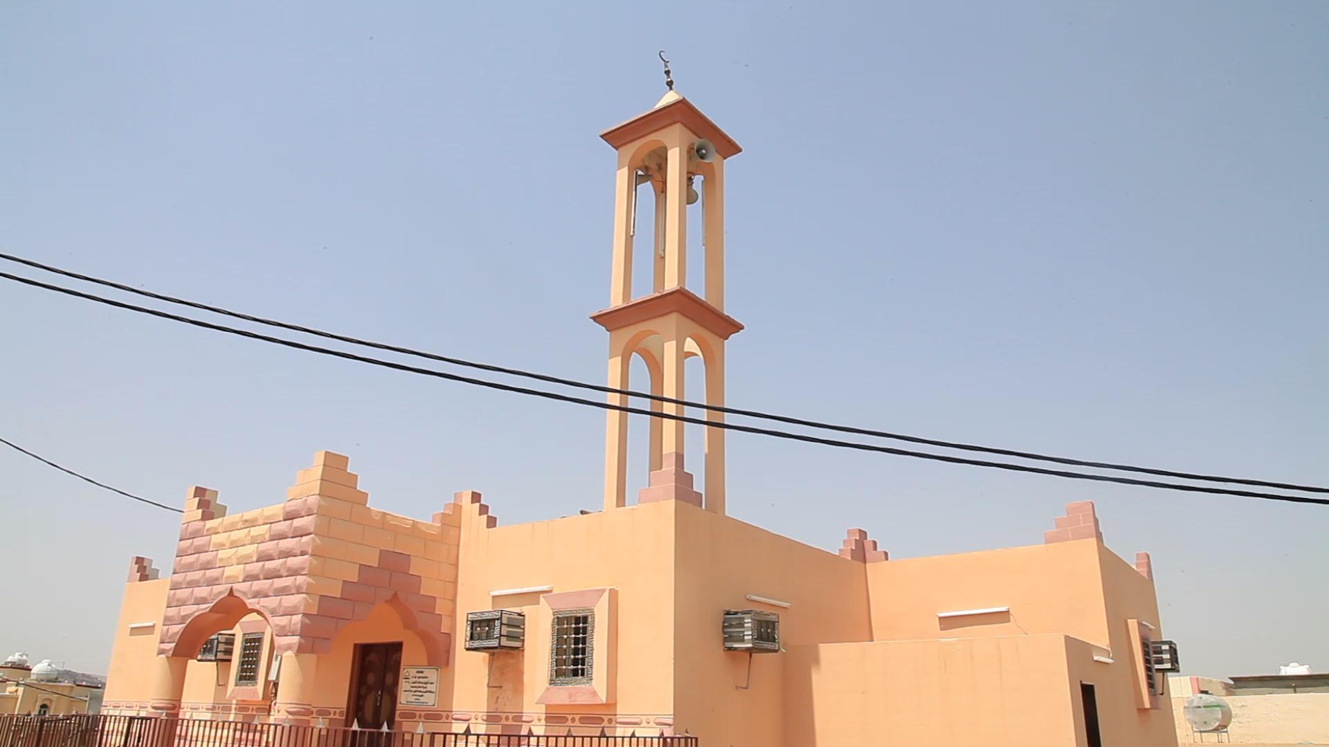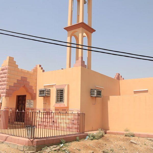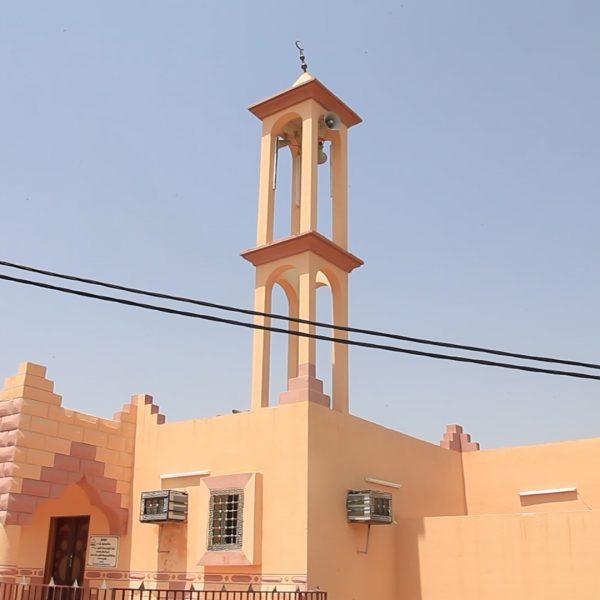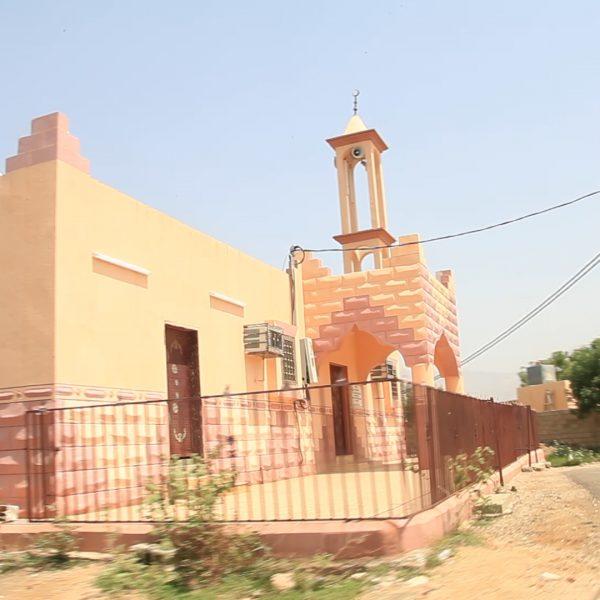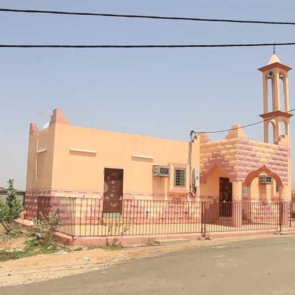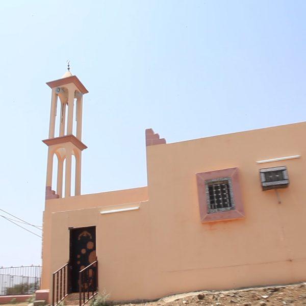 مسجد+ منارة + خزان مياه +  دورات مياه  .