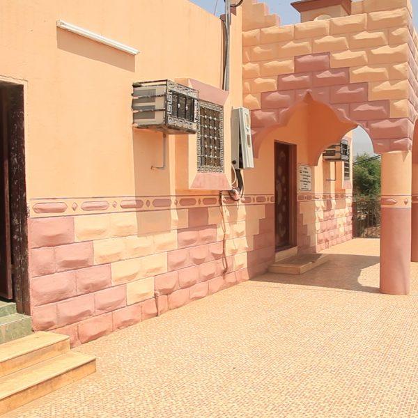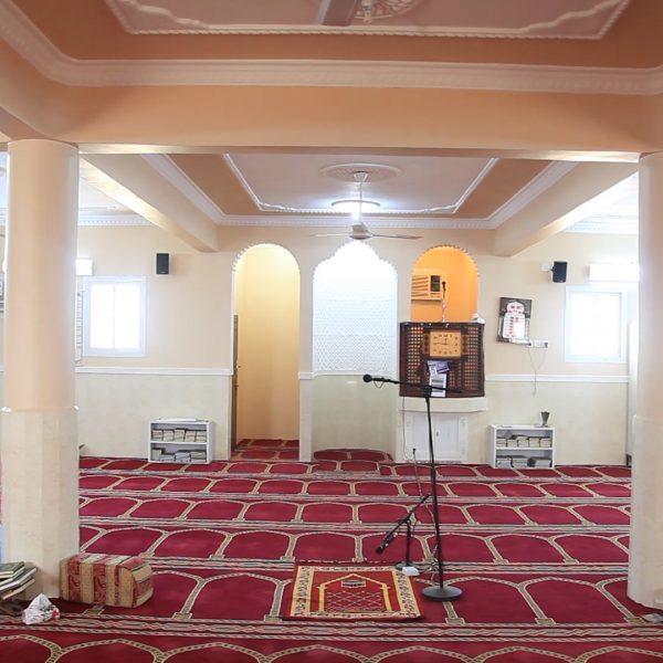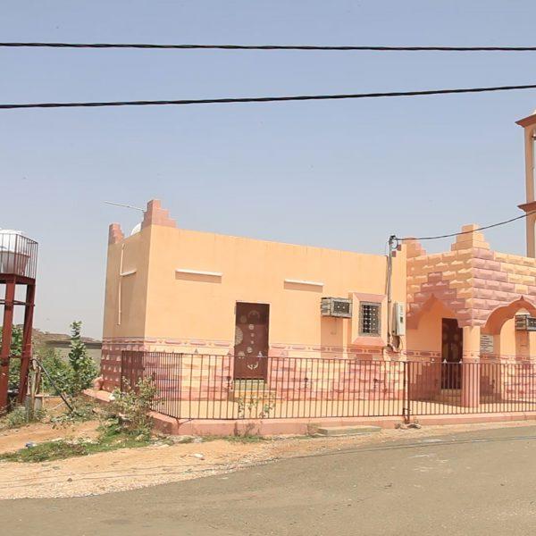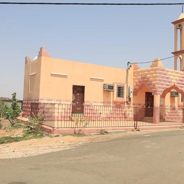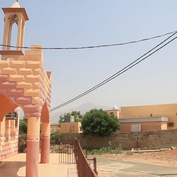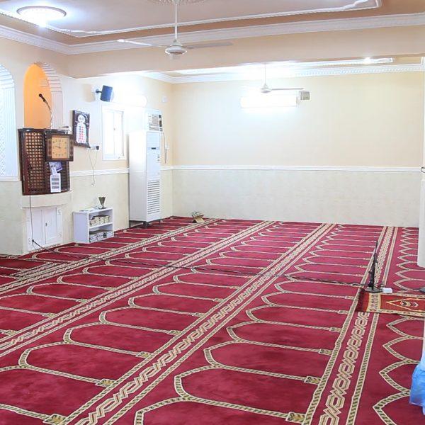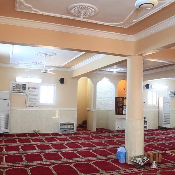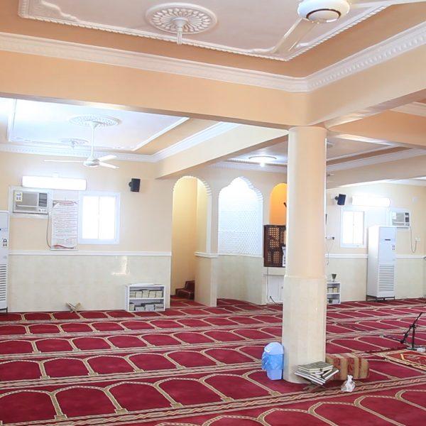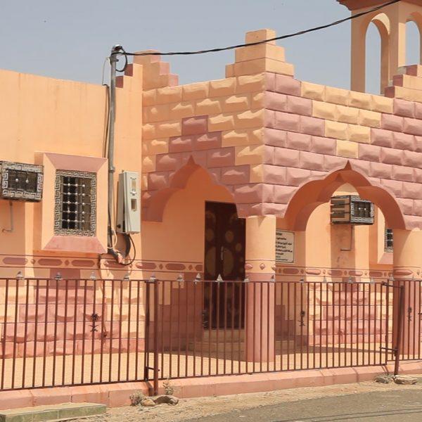 مسجد+ منارة + خزان مياه +  دورات مياه  .