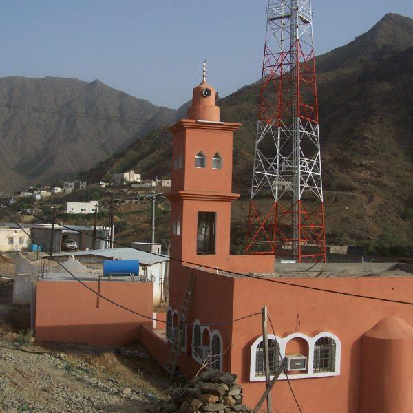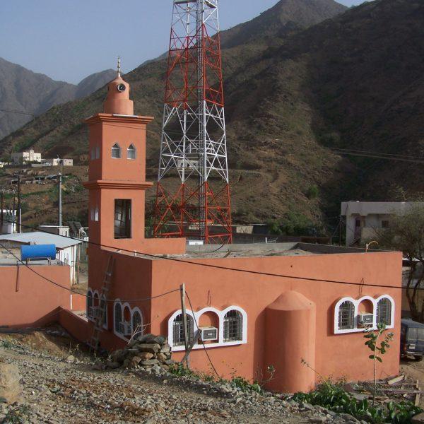 مسجد+ منارة + خزان مياه + دورات مياه .