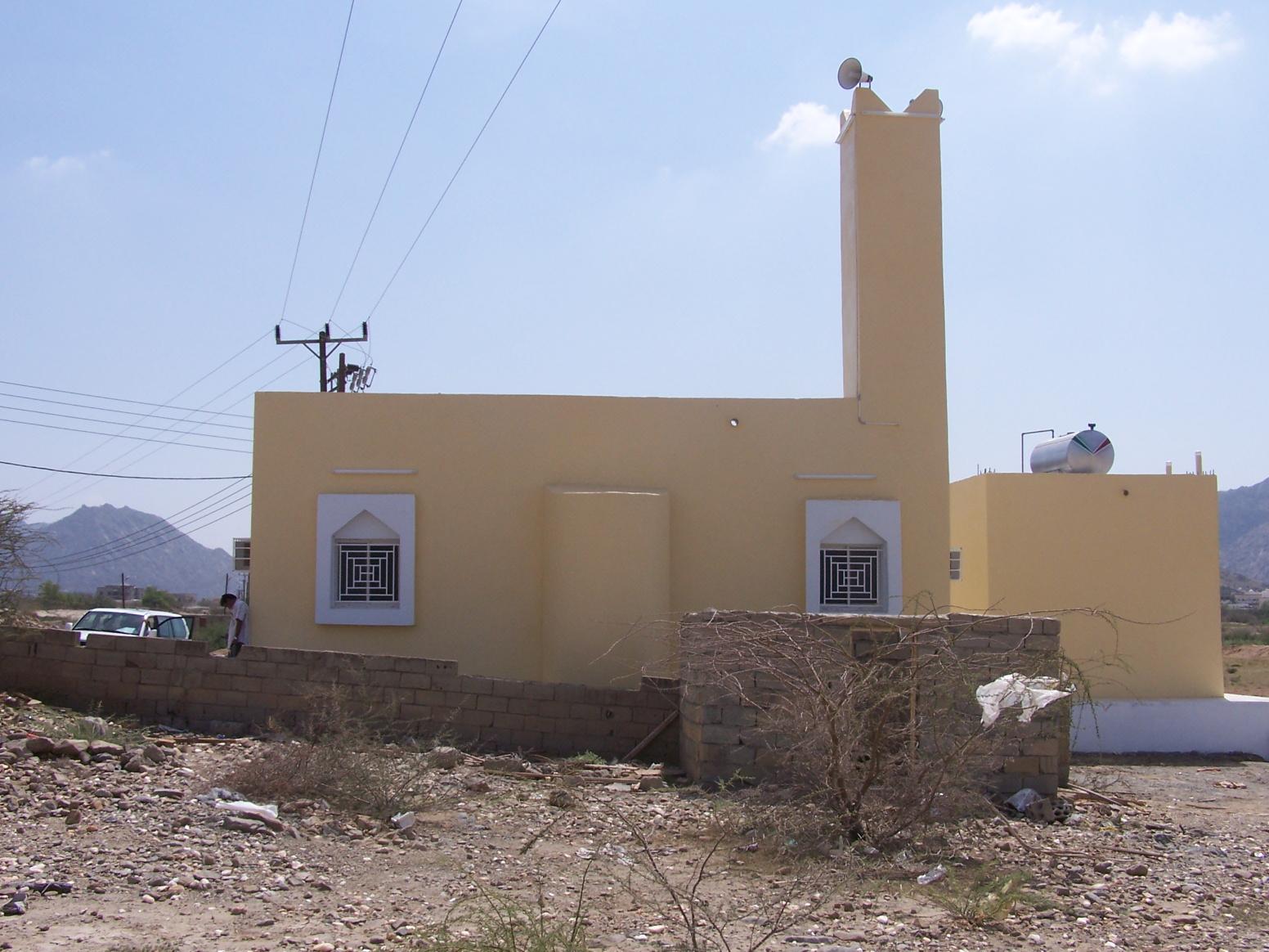 مسجد+ منارة + خزان مياه + دورات مياه .