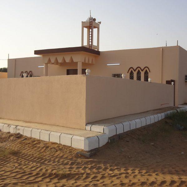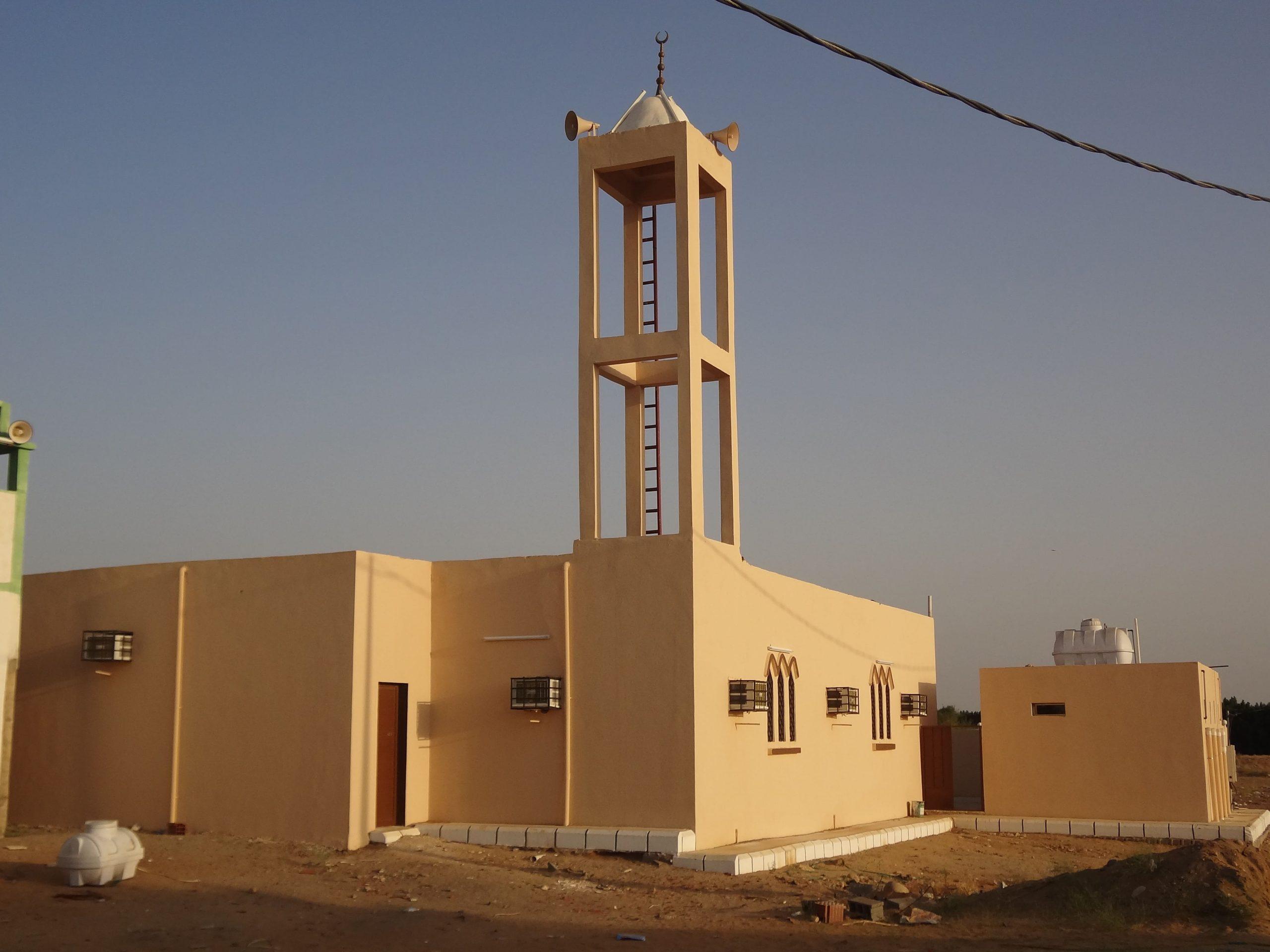 مسجد+ منارة + خزان مياه + دورات مياه .