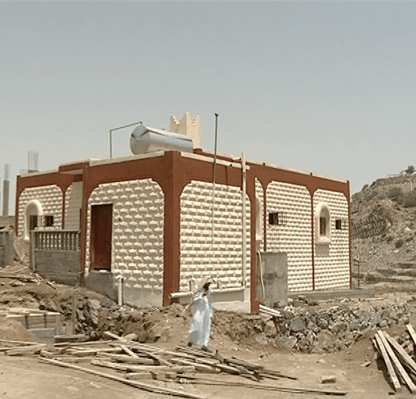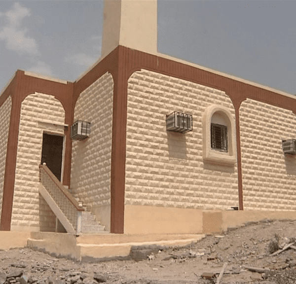 مسجد+ منارة + خزان مياه + دورات مياه .