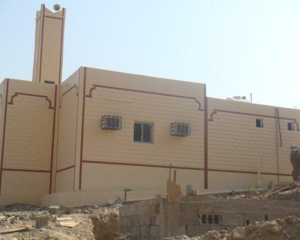 مسجد+ منارة + خزان مياه + دورات مياه .