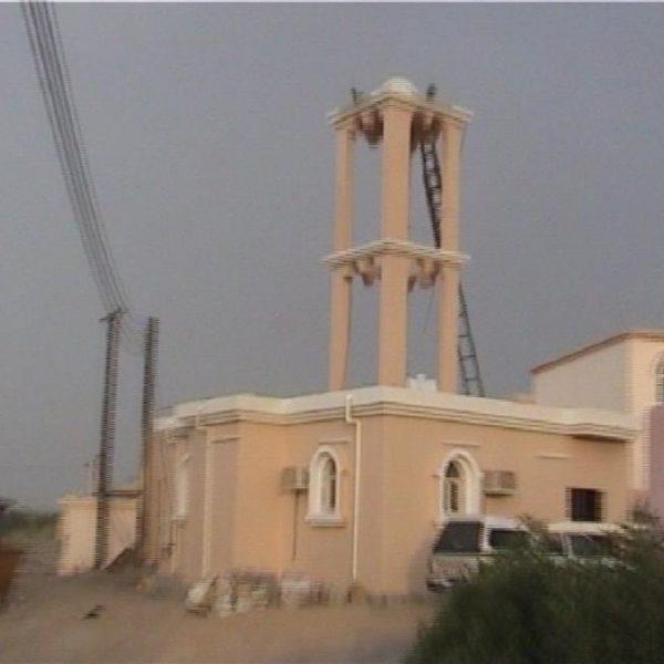 مسجد+ منارة +خزان مياه + دورات مياه.