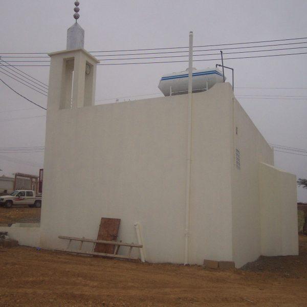 مسجد+ منارة +خزان مياه + دورات مياه .