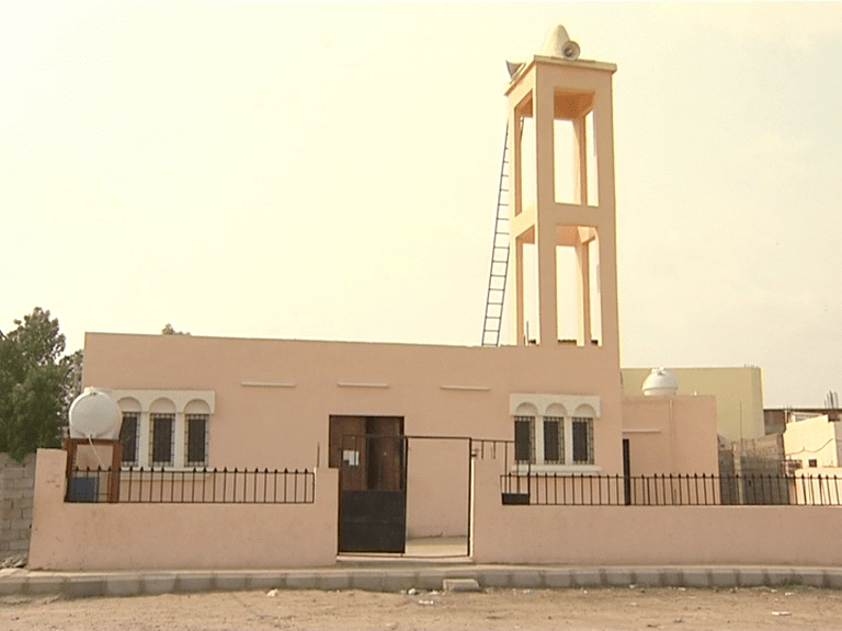 مسجد+منارة +خزان مياه +  دورات مياه .